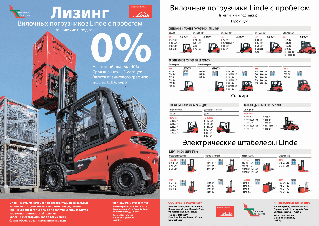 Совместно с нашим партнером "Подъёмные Технологии" мы сформировали акционную программу "Лизинг погрузчиков Linde с пробегом".